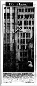 Judy Tenuta being dropped from the top of Times Square to launch Comedy Centra.